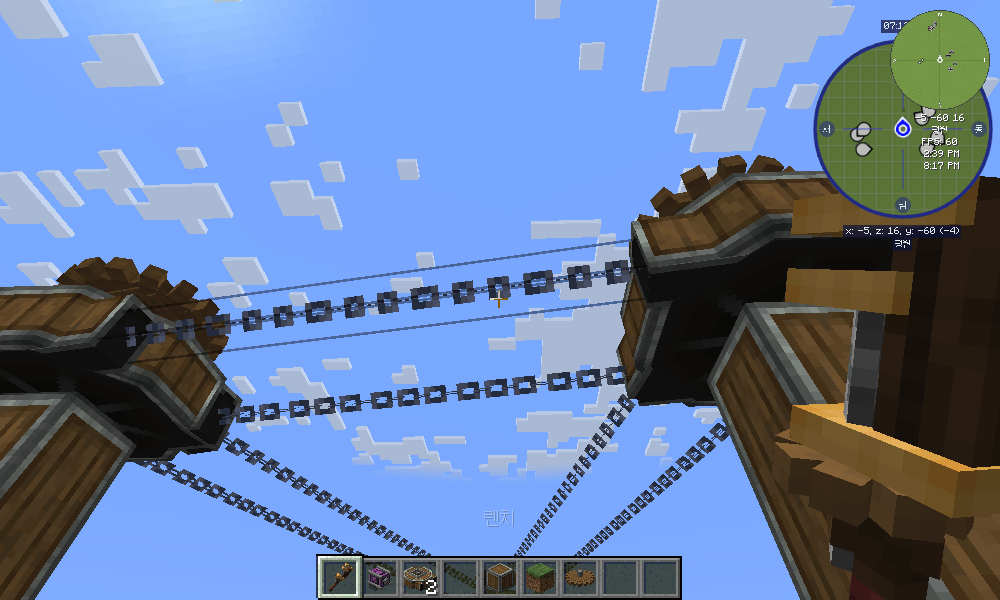 4] 사슬 컨베이어에 연결된 사슬을 보고 렌치로 우클릭하면 사슬에 올라탈 수 있다.