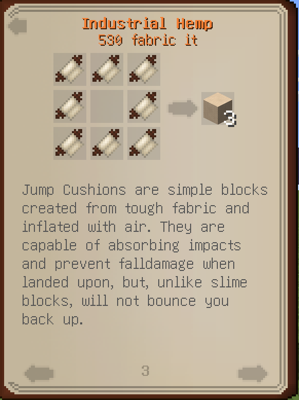 1 ] 점프 쿠션은 위에 떨어졌을 때 낙뎀을 방지해 준다. 슬라임 블록처럼 튀어 오르진 않는다.