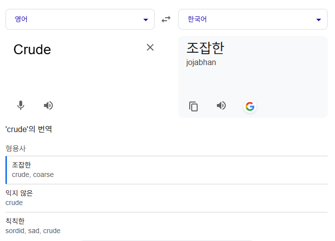 즉 ( Crude ) ( Blast Furnace )는 ( 조잡한 ) ( 용광로 )란 뜻이고