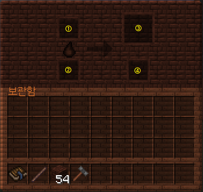 ① 원목, 석탄, 석탄블록이 들어가는 자리입니다.