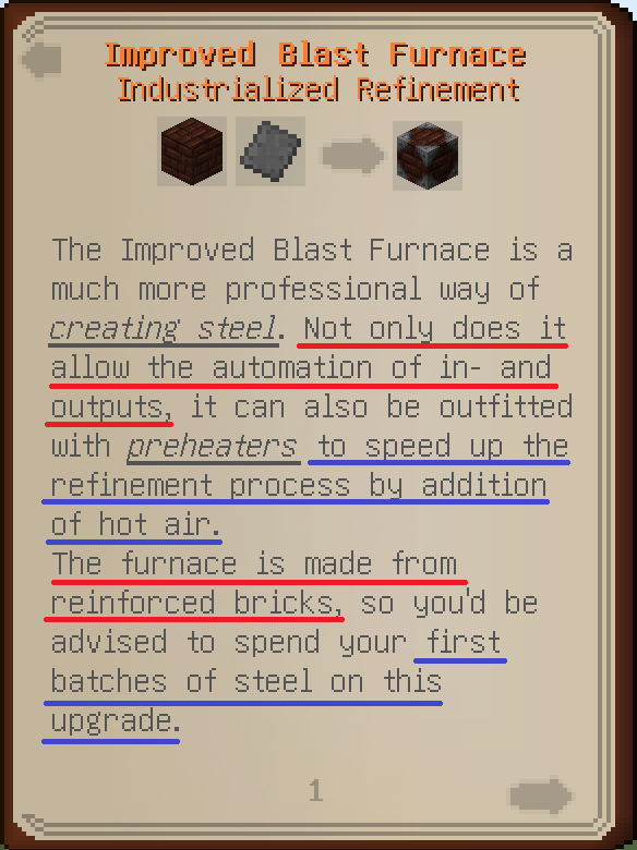 용광로의 첫 장에서 생산되는 강철을 우선 투자할 것을 추천한다고 하는군요. 즉, 강철이 들어간다는 소리겠죠?
