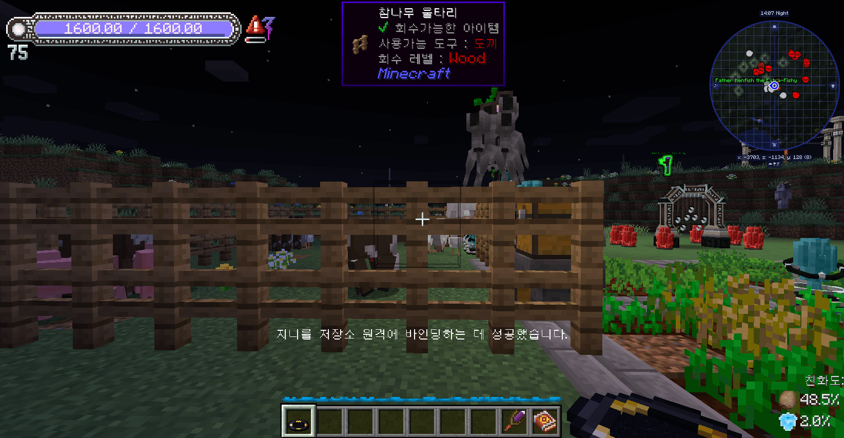 저희는 마법 저장소를 만들어서 무한스텍으로 총 640칸이라는 인벤토리 슬롯을 얻었습니다.